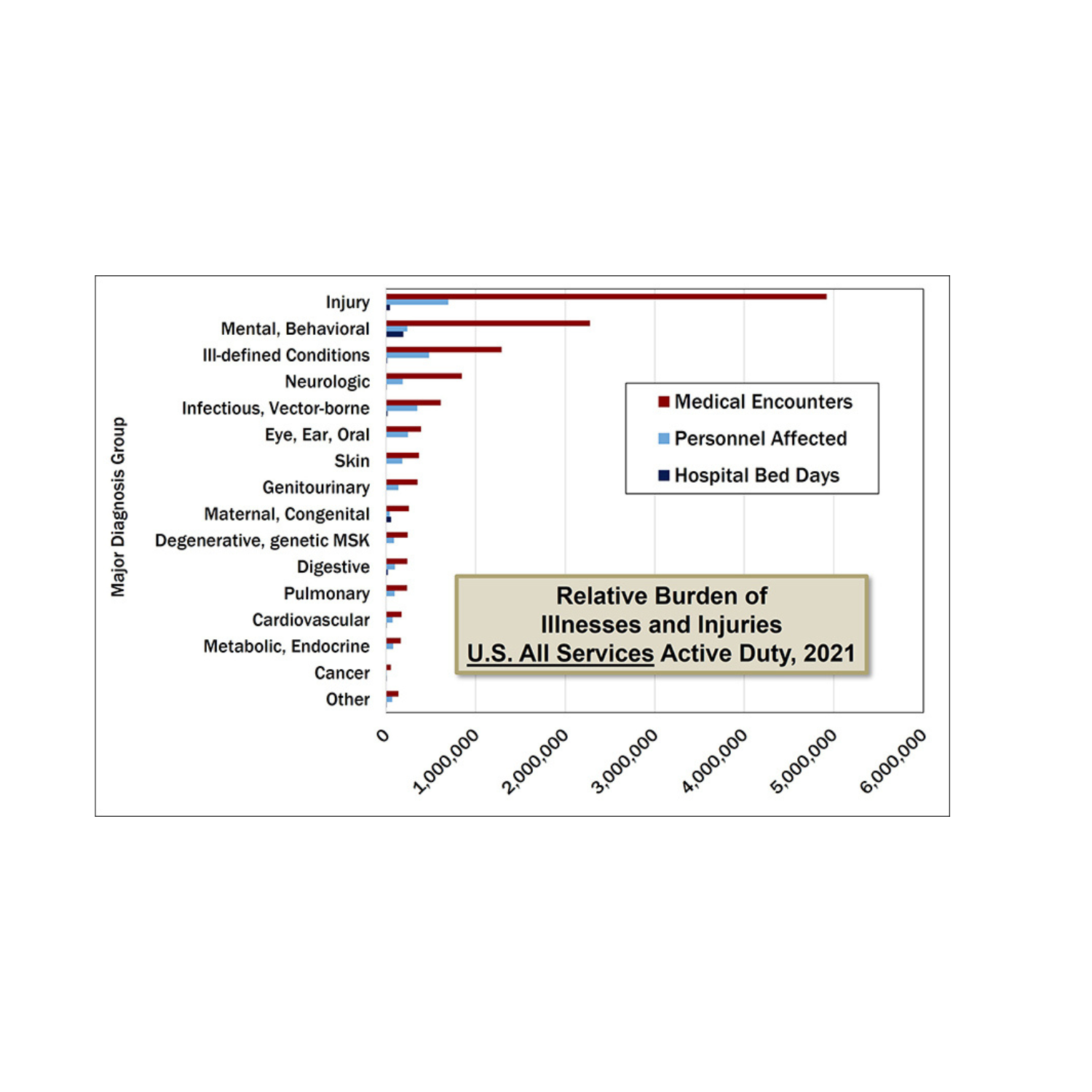 - DOD Active-duty Service members require medical treatment for injuries almost 5 million times each year (for around 1.5 million individual injuries).